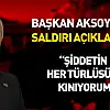 Hasan Aksoy şiddetin her türlüsünü kınadığını belirterek, "Şiddetin her türlüsünü kınıyor, kamuoyunu sakin ve sağduyulu olmaya davet ediyorum. Demokrasiye, düşünce özgürlüğüne ve insan hayatına yönelik hiçbir saldırı kabul edilemez. Kararlı duruşum ve halkımıza hizmet azmim, bu tür olaylarla asla sarsılmayacaktır. Tüm vatandaşlarımızın huzuru ve güvenliği için gerekli tüm önlemlerin alınacağına dair inancım tamdır" ifadelerini kullandı.