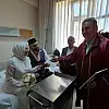 Mahalle muhtarının kıydığı nikahtan sonra gelin ve damat hastane odalarını gezip diğer hastalara hem nikah şekeri verdiler hem de şifa dilediler.