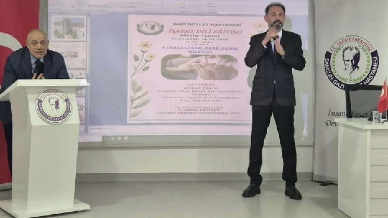 Samsun İşitme Engelliler Okulu eğitmenlerinden Yeminli Türk İşaret Dili Tercümanı Murat Tekin tarafından 2 hafta süreyle verilen eğitimlerin bir başlangıç olduğu ve kapsamının genişletileceği belirtildi. Hastane personeli aldığı eğitimleri işitme engelli bir hastanın, hastane birimleriyle işaret diliyle iletişim kurmasını konu alan bir tiyatro ile de gösterdi. Hastane personeli işaret dili ile İstiklal Marşı okudu.