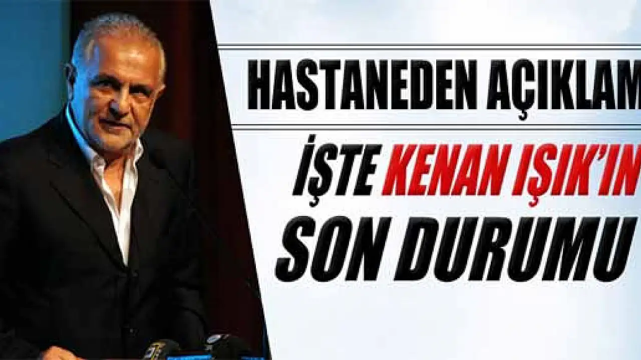 Vehbi Koç Vakfı Amerikan Hastanesi’nden Kenan Işık'ın sağlık durumu ile ilgili yapılan açıklamada, "Solunumunun başlaması nedeni ile suni solunum cihaz desteğinin azaltılması, ağrılı uyaranlara cevap alınması, spontan göz açması gibi olumlu gelişmelere karşın, Kenan Işık’ın kontrol tomografi, manyetik rezonans görüntüleme ve klinik bulgulara göre, beyin korunmasına yönelik tıbbi tedavi ve girişimlere rağmen beyin hasarının devam ettiği gözlenmiştir. Hastamız Kenan Işık’ın bilinci kapalı olup, stabil seyretmektedir. Hayati tehlikesi sürmektedir" ifadelerine yer verildi.