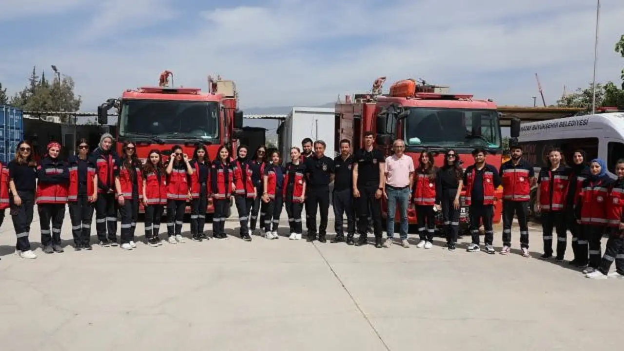 Hatay Büyükşehir Belediyesi itfaiye ekipleri, üniversite öğrencilerine yangın eğitimi verdi.