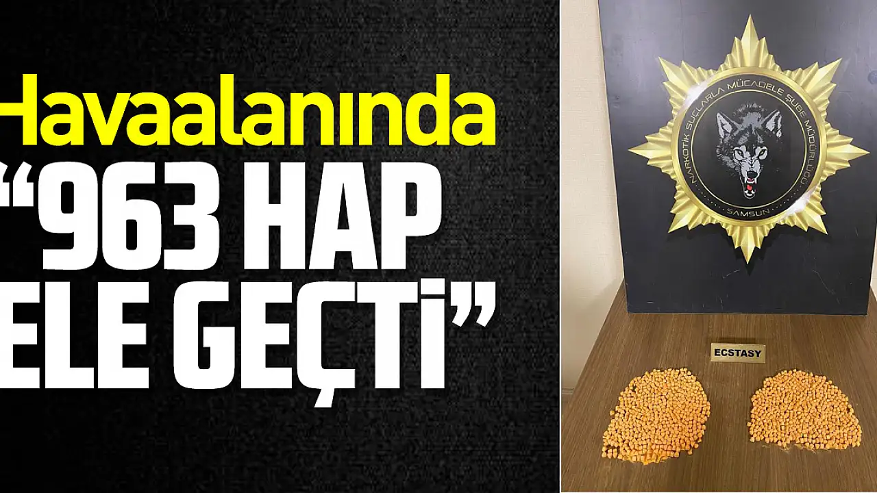 Edinilen bilgiye göre; Samsun'da İl Emniyet Müdürlüğü Narkotik polisi tarafından gerçekleştirilen operasyonda Çarşamba havaalanında 963 adet ecstasy uyuşturucu hap ele geçirildi. Samsun Cumhuriyet Başsavcılığı koordinesinde, uyuşturucu ile mücadele kapsamında çalışma yapan Samsun Emniyet Müdürlüğü Narkotik Suçlarla Mücadele Şube Müdürlüğü ekipleri, Samsun-Çarşamba Havalimanında yaptıkları operasyonda 963 adet ecstasy uyuşturucu hap ele geçirdi.