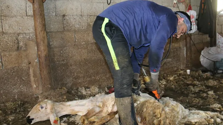 Sivas'ta çetin geçen kışın ardından havaların ısınmasıyla beraber koyunların üzerinde 1 yılda büyüyen yünlerin kırkım işlemine başlandı.