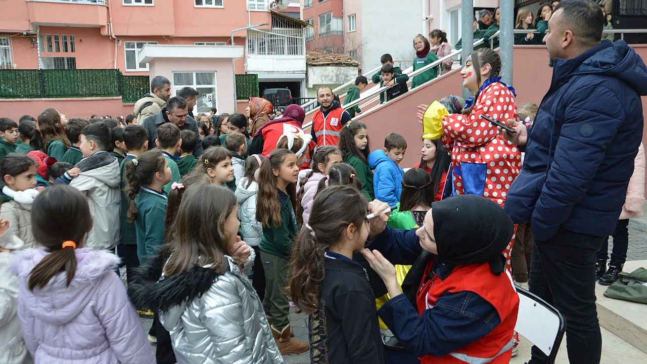 Okulda gerçekleştirilen kan bağışı faaliyeti sırasında Genç Kızılay gönüllüleri tarafından öğrencilere yönelik yüz boyama ve palyaço etkinlikleri düzenlenerek farkındalık oluşturuldu.