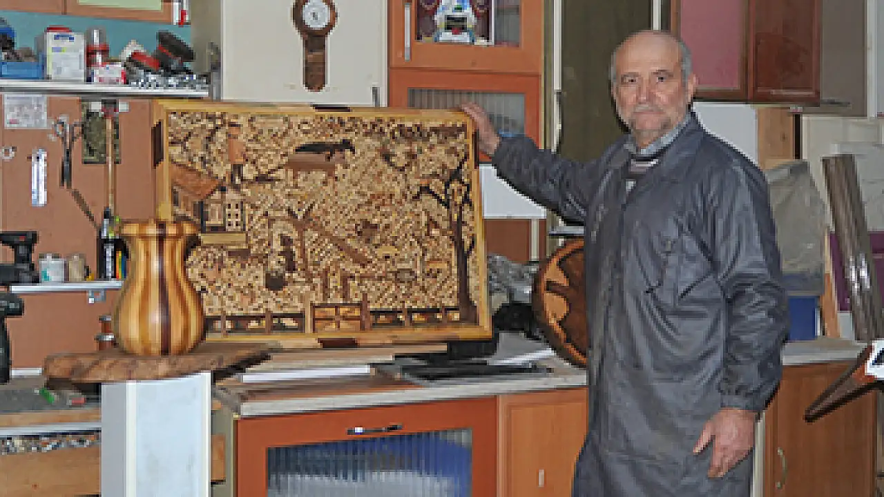 39 yıldır marangozluk yapan 57 yaşındaki Kadir Temiz, çocukluğundaki anılarını çeşitli süs eşyalarına işliyor. Temiz, hobi olarak başladığı el emeği göz nuru ürünlerin sergisini açmak için gece-gündüz çalışıyor. Çocukluk anılarını ahşaba işleyen Temiz, 16 çeşit ağaç türünden elde ettiği doğal renklerle ilginç eserler ortaya koyuyor.