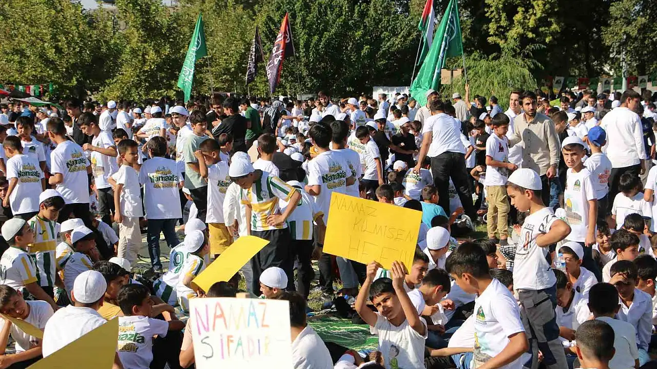 Diyarbakır'da yüzlerce çocuk ve aileleri 'Hayat Namazla Güzel' etkinliğinde bir ara geldi.