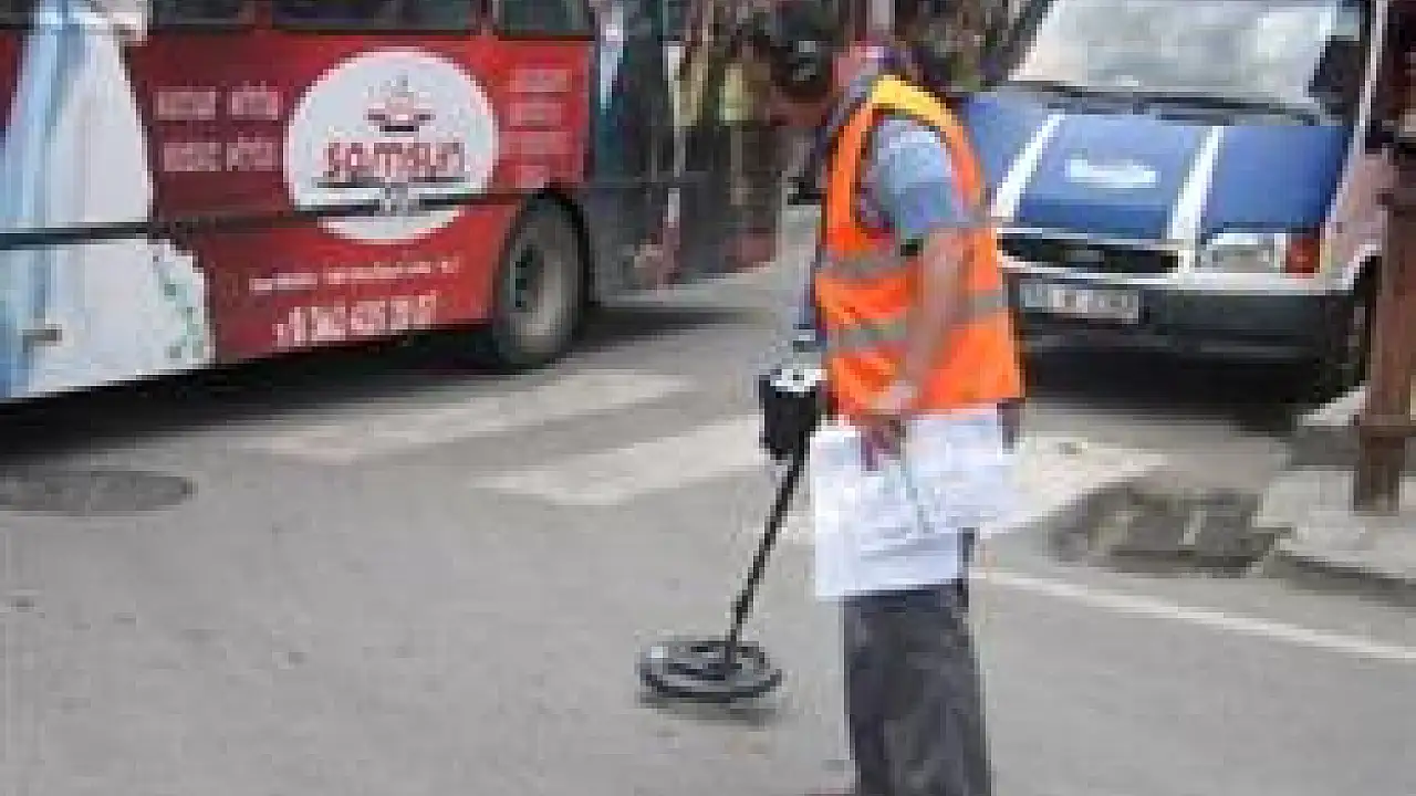 SASKİ Genel Müdürlüğü'ne bağlı ekipler, Samsun sokaklarında dedektörle asfaltın altında kalmış logar kapaklarını arıyor.