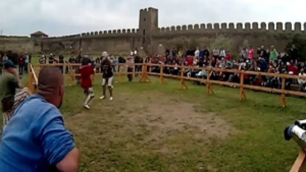 İki şövalyenin mizansen dövüşü sırasında kopan kılıç parçası, izleyicilerden birinin başını sıyırdı. Ölümün teğet geçtiği o ansa kameraya böyle yansıdı.