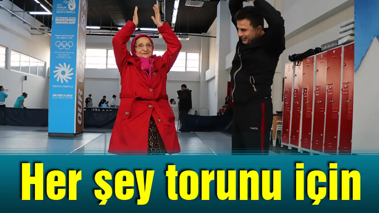 Samsun'da 87 yaşındaki Esma Kocaoğlu engelli torunu için her gün 12 kilometre yol gelip, onunla birlikte spor yapıyor.