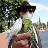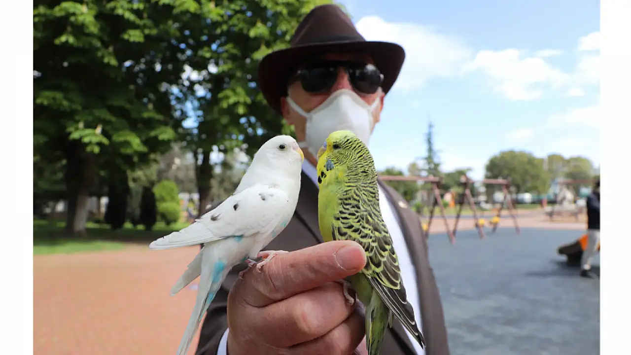 Samsun'da yaşayan 63 yaşındaki İsmet Akça, parmağına kondurduğu 'Süslü' ve 'Beyaz' adlarında muhabbet kuşları ile sokak sokak geziyor.
