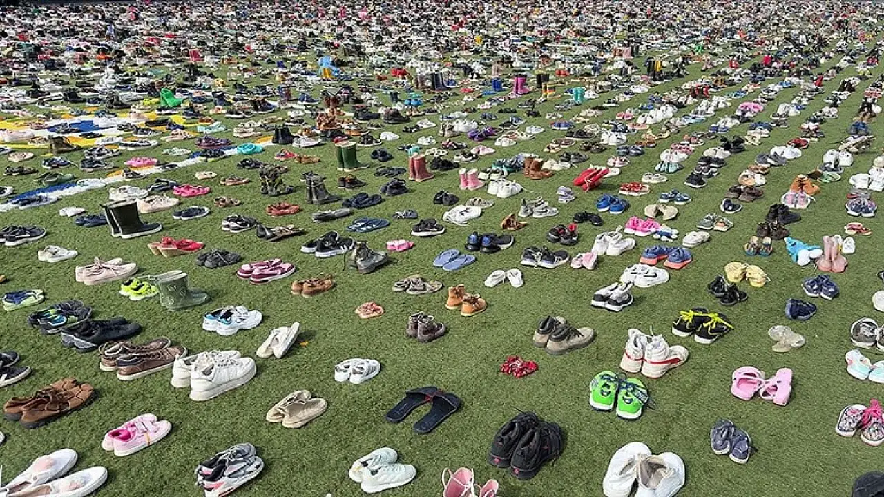 Öldürülen çocuklara dikkati çekmek amacıyla meydana 16 bin çiftten fazla çocuk ayakkabısı bırakıldı. Gazze'de hayatını kaybeden binlerce çocuğun adı ve yaşı okundu.