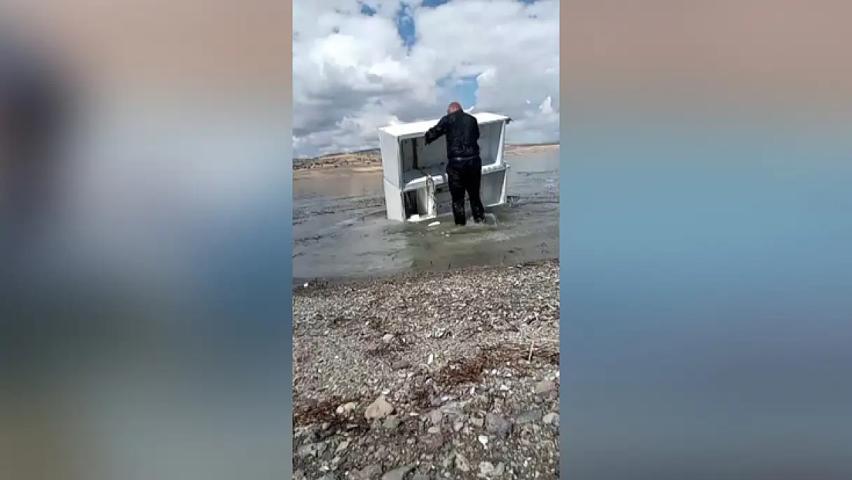 Hurda buzdolaplarından kayık yaptı, barajda turlamaya başladı!