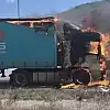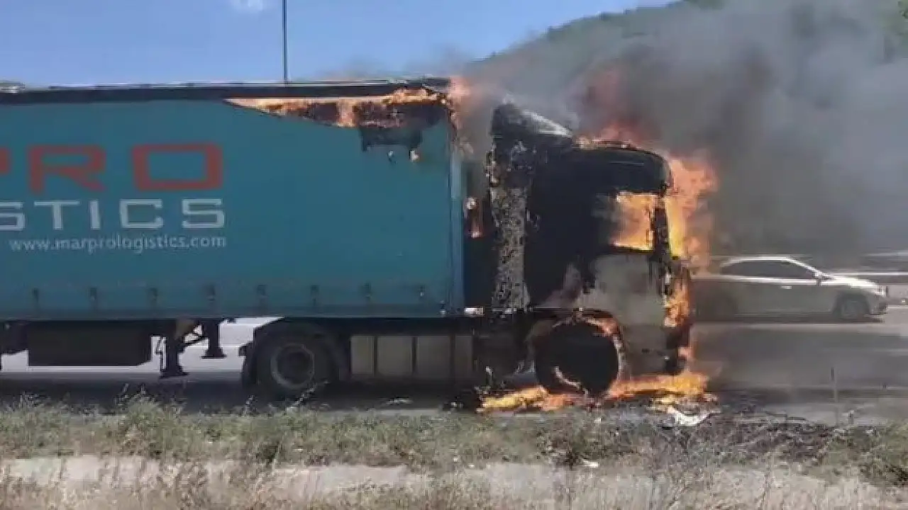 Hurda kağıt yüklü tır alev alev yandı
