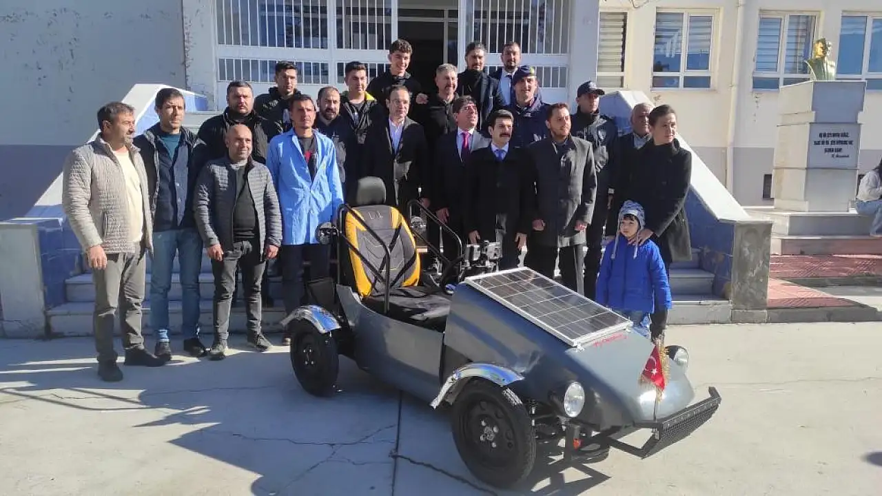 Çevreye duyarlı, çevre dostu, teknolojilerle donatılarak altında bulunan çevre dostu kayıt teknolojileri sayesinde aracın altında bir hayvan olup olmadığını tespit ederek canlı hayvanları korumak için kamera, yük atabilmek için arkaya açıp kapanabilen bölüm, Life p 04 batarya, HD görünümlü kameralar ile donatıldı. 35 kilometre hız yapabilen, şarjı ile 9 kilometre gidebilen elektrikli araç, Türkiye Yüzyılı vizyonu doğrultusunda Türkiye'nin teknoloji ve yenilikçi liderlik hedeflerine katkı sağlamak, öğrencilerin kariyer yolculuklarına önemli bir basamak oluşturmak gayesiyle yapıldı.Araçla test sürüşü yapan Kaymakam Tarık Safa Kahveci, "Gerçekten mükemmel olmuş. Sizleri tebrik ediyorum. Ekip ruhu ile çalışarak böyle güzel bir eser ortaya çıkmış" dedi.Proje Öğretmeni Mehmet Nadir Kavruk, "Bir ekip çalışmasıyla elektrikli aracımızı ürettik. Proje ekibimize teşekkür ediyorum" diye konuştu.Okul Müdürü Gökhan Gümüş ise, "Bize destek olunduğunda bundan daha da iyisini yapabiliriz. Yeter ki bizlere destek olunsun bizler daha iyisini yapabiliriz seri üretime geçebiliriz. Okulumuz proje dahilinde öğretmenlerimiz, öğrencilerimiz olmak üzere katkı sağlayan İlçe Kaymakamı Tarık Safa Kahveci'ye, İlçe Milli Eğitim Müdürü Ahmet Ataşman'a, oda başkanlarına, Avcılar ve Atıcılar Derneği Başkanı olan Sanayi Esnafı Mehmet Işık'a, Sinan Atasoy'a, Emreh Ercan'a, Onur Terzi'ye, Hikmet Ateş'e, Ferhat Kılıç ve teknisyen Kemal Erim'e, Okul Aile Birliği Başkanmız Fatih Aktaş'a teşekkür ederim" şeklinde konuştu.