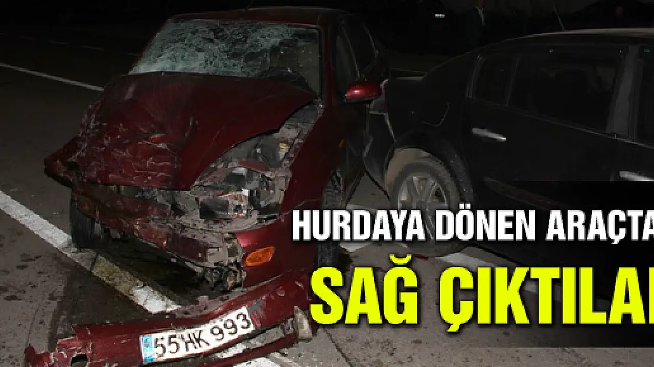 Samsun'da iki otomobilin çarpışması sonucu meydana gelen trafik kazasında hurdaya dönen araçlarda bulunan sürücüler kazayı yaralı olarak atlattılar