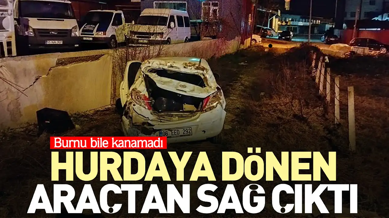 Kaza, gece 00.15'te Samsun-Sinop karayolu sanayi sitesi girişi yan yolunda meydana geldi. Alınan bilgiye göre, Samsun istikametine seyir halinde olan Burak Can Çoşkun (22) idaresindeki 55 EED 292 plakalı otomobil, sanayi sitesi yan yoluna girdiğinde direksiyon hakimiyetini kaybederek kaldırama çarptı. Kaldırıma çıkan otomobil 15 metre ileride bulunan duvara çarparak durdu. İhbar üzerine olay yerine itfaiye, sağlık ve polis ekipleri sevk edildi. Hurdaya dönen otomobilden sürücü, emniyet kemeri sayesinde kazayı burnu bile kanamadan kurtuldu. Araç sürücüsü daha sonra aracını kaldırmak için çekici bekledi.