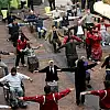Huzur evinde kalan yaşlılar aerobik yapıyor