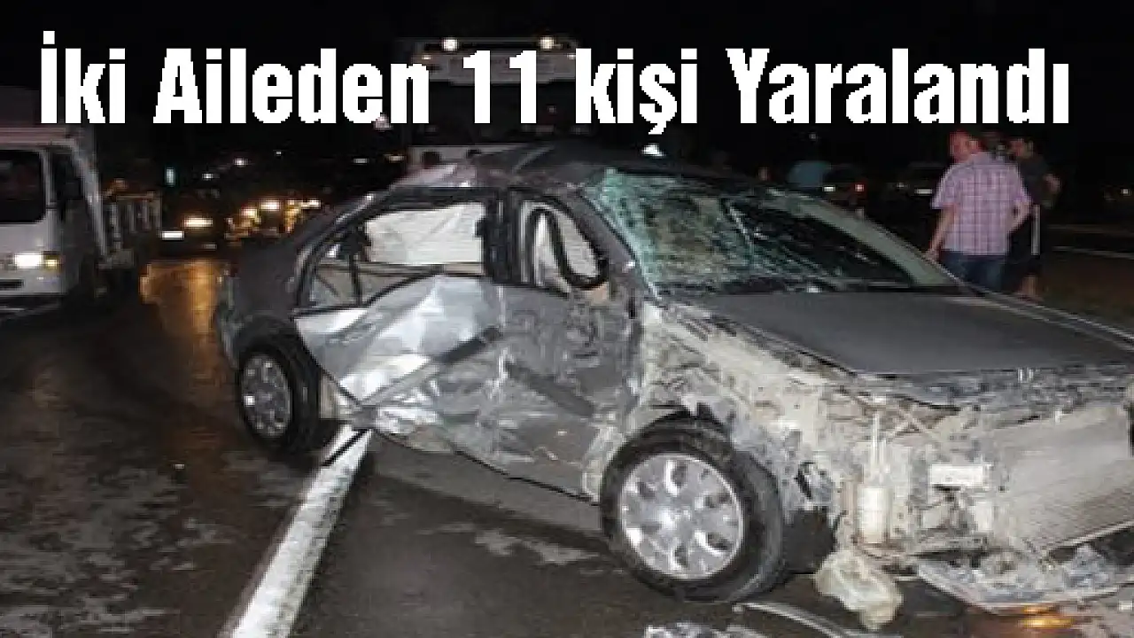 Çarşamba ilçesinde iki otomobilin çarpışması sonucu meydana gelen trafik kazasında, iki aileden 11 kişi yaralandı.