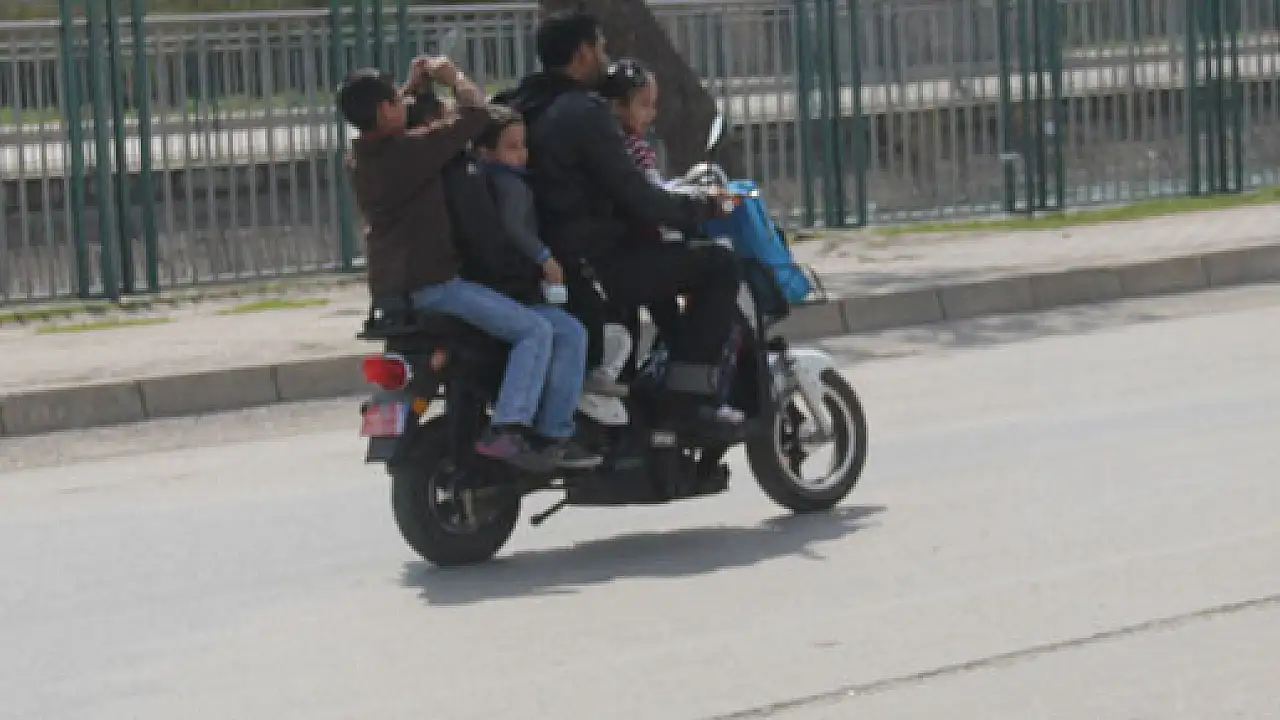 Seyhan ilçesine bağlı Gürselpaşa Mahallesi'nde Kıyıboyu Caddesi'nde iki kişilik motosiklete 5 kişi bindi. Motosiklete binen 4 kişinin çocuk olması ve hepsinin kasksız olması da dikkat çekti. Çocuklar motosikletin üzerinde birbiriyle oyun oynayarak giderken sürücü ise tehlikeye aldırmadan yoluna devam etti.