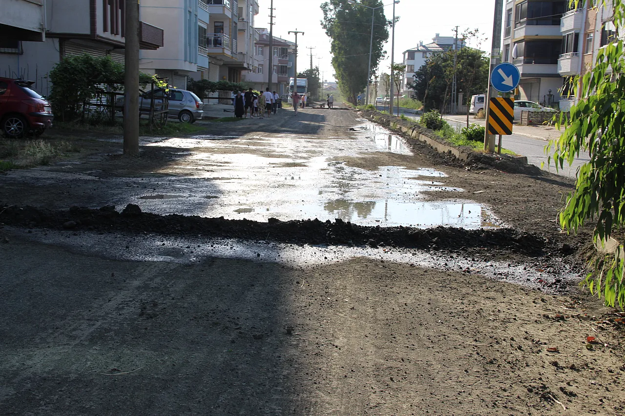 Samsun'un Çarşamba ilçesinde Kirazlık Çay Mahallesi sakinleri uzun süredir devam eden ve tamamlanmayan yol çalışmaları nedeniyle eylem gerçekleştirdi.