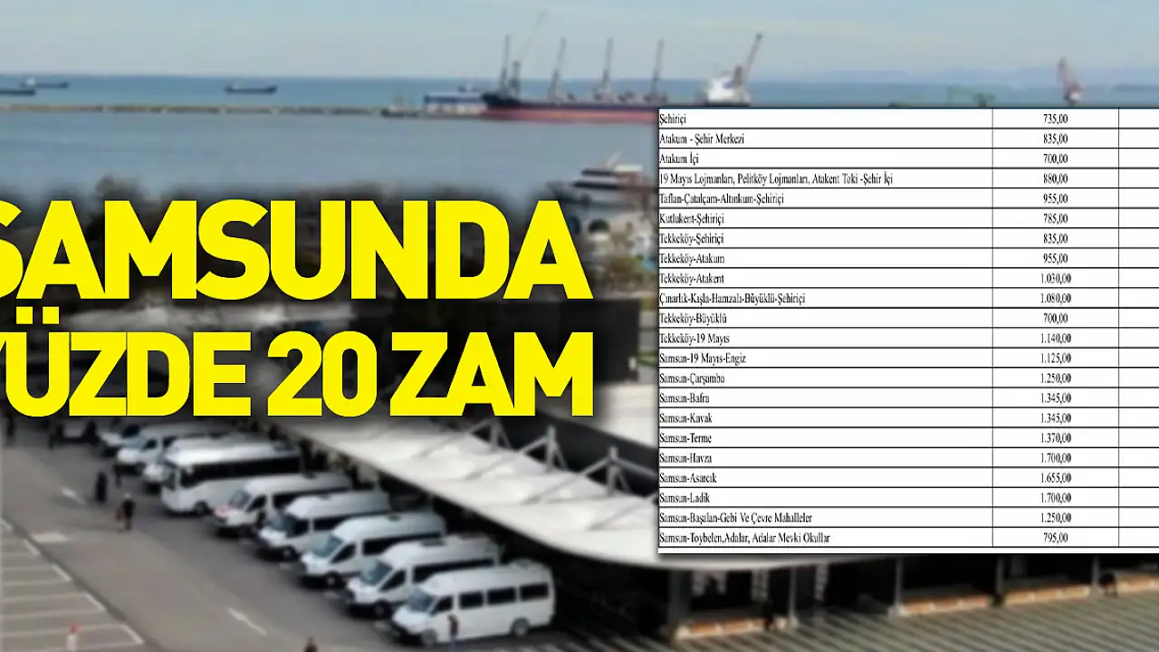 Samsun-Asarcık 1655 TL’den 1986 TL’ye ve Samsun-Ladik 1700 TL’den 2040 TL’ye yükseltildi.