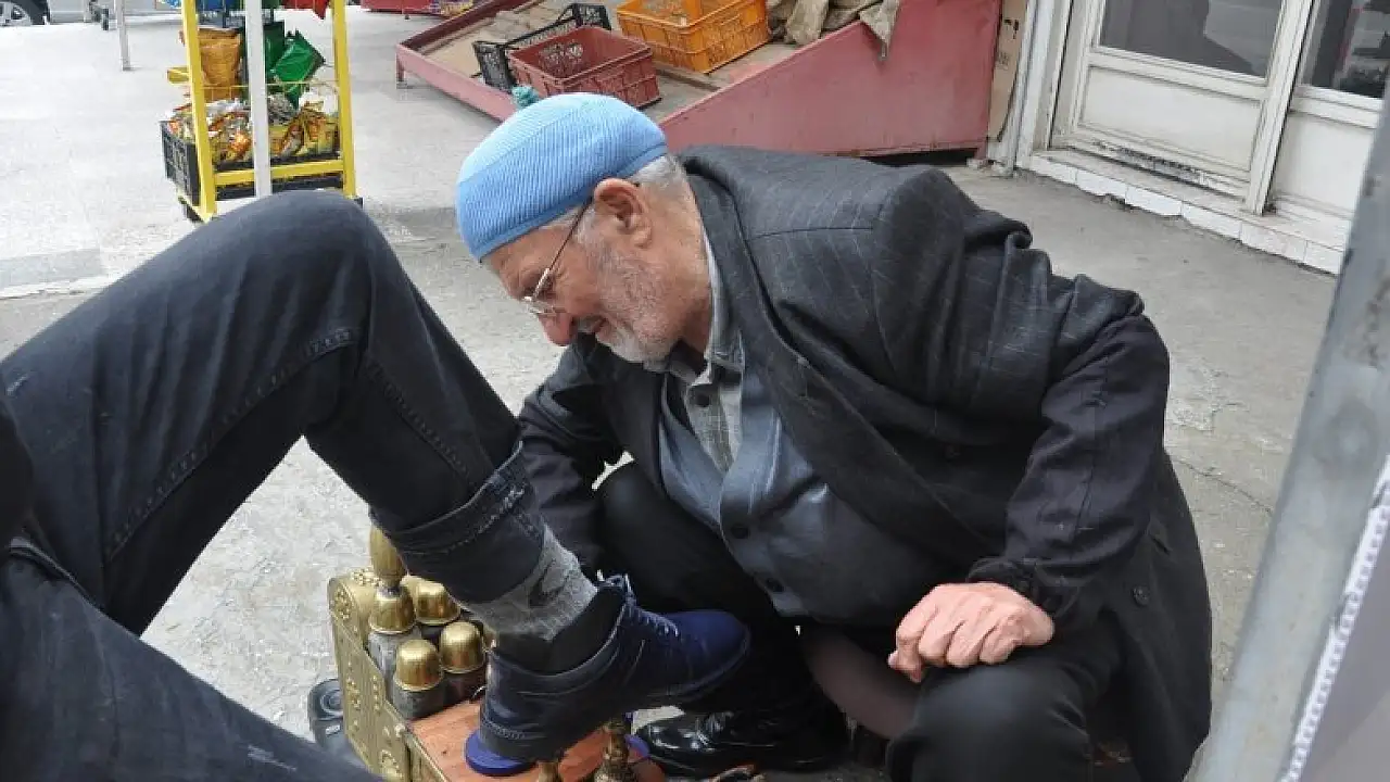 Samsun'un 19 Mayıs ilçesinde 35 yıldır aynı yerde ayakkabı boyacılığı yapan 78 yaşındaki yaşlı adam yıllara meydan okuyor