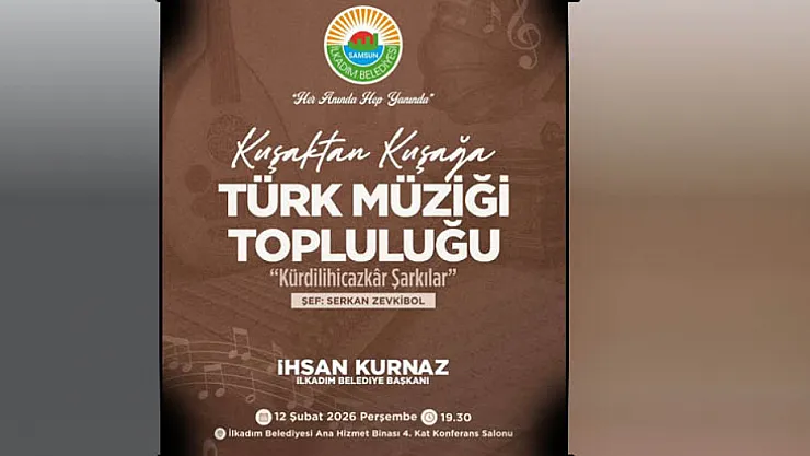 İlkadım Belediye Başkanı İhsan Kurnaz’ın davetiyle gerçekleştirilecek konser, 12 Şubat 2026 Perşembe günü saat 19.30’da İlkadım Belediyesi Ana Hizmet Binası 4. Kat Konferans Salonu’nda düzenlenecek.
