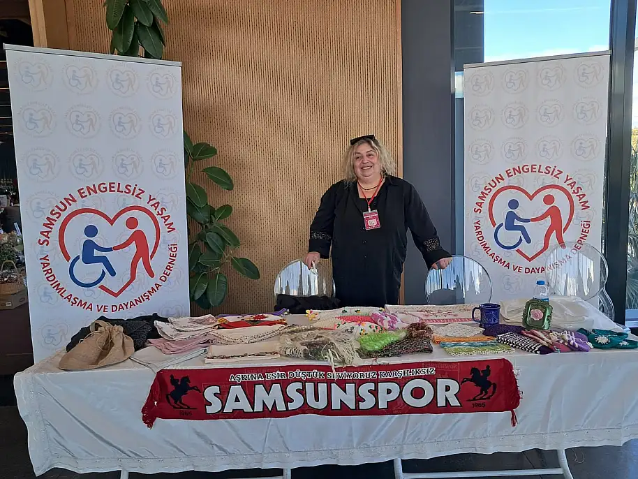 Samsunspor ile Samsunlu kadınların iş birliğinde düzenlenen 2026'ya Merhaba Alışveriş ve Dayanışma Şenliği'nde, Engelsiz Yaşam Yardımlaşma ve Dayanışma Derneği bünyesinde yer alan özel birey Ekin Tolga Deniz, el emeği ürünleriyle dikkat çekti.