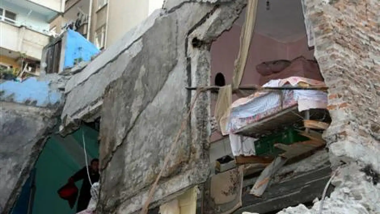 Yarısı olmayan ve yıkılma tehlikesi bulunan binadan tahliye çalışmaları vatandaşlarca ilgiyle izlendi.