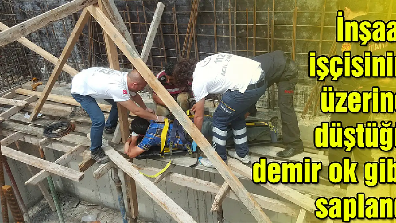 İnşaat işçisinin üzerine düştüğü demir ok gibi saplandı