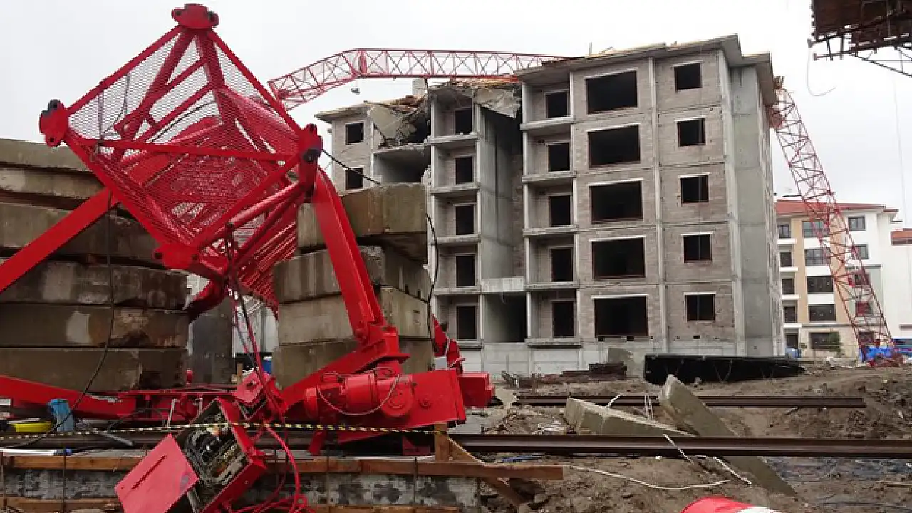 Kütahya'da bir inşaatta bugün sabah saatlerinde korkutan bir kaza meydana geldi. Çalışma sırasında bir vinç aniden devrildi