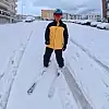 işe kayakla gitti