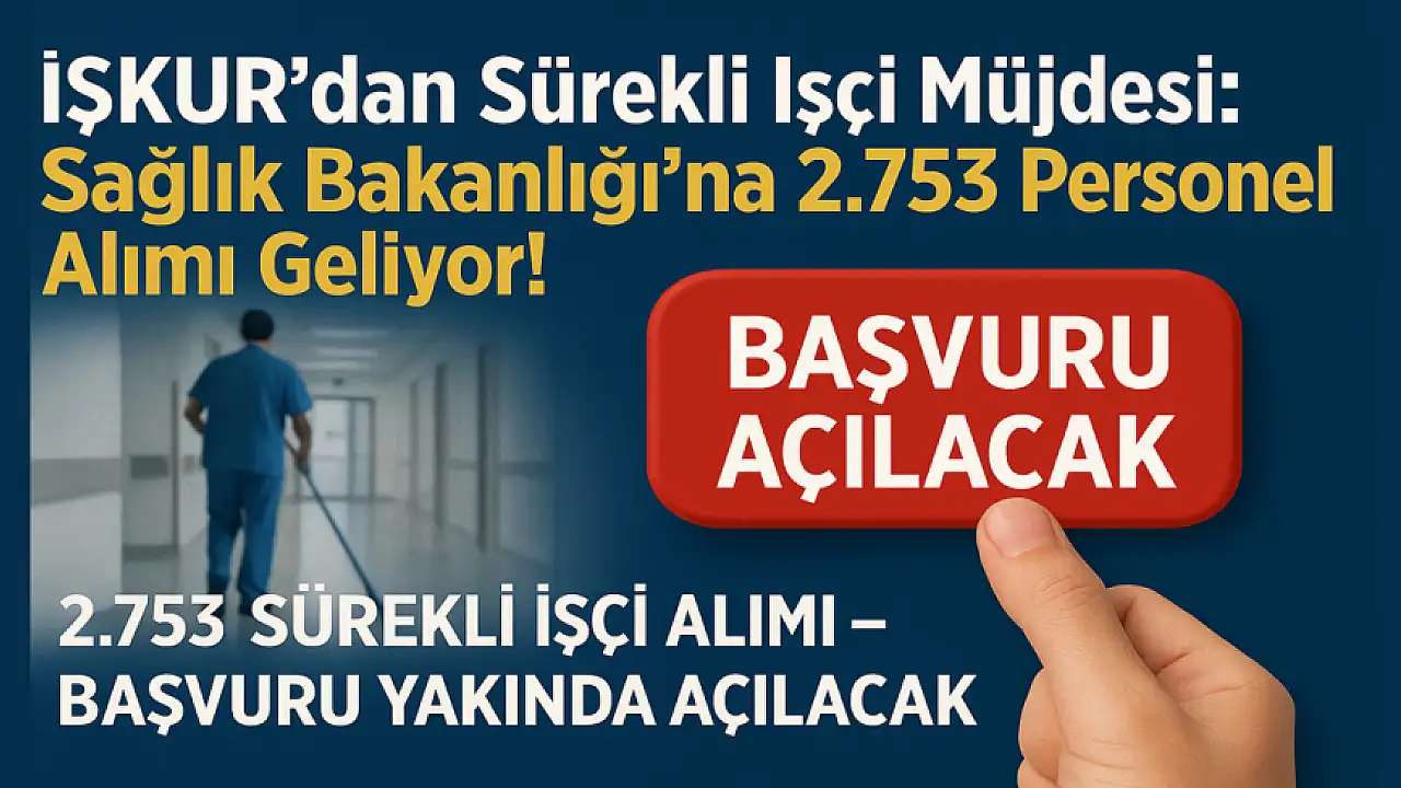 Sağlık Bakanlığı'nın ikinci etap personel alımları kapsamında gözler 2.753 sürekli işçi kadrosuna çevrildi. Başvurular henüz başlamadı ancak kısa süre içerisinde İŞKUR üzerinden ilan edilmesi bekleniyor.