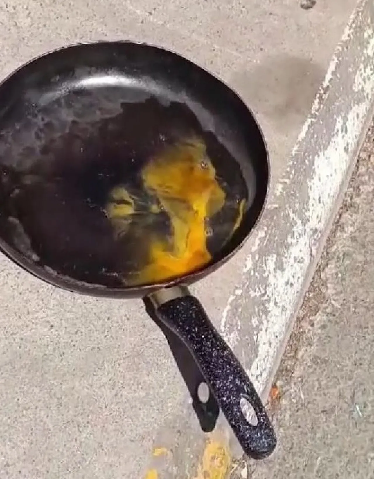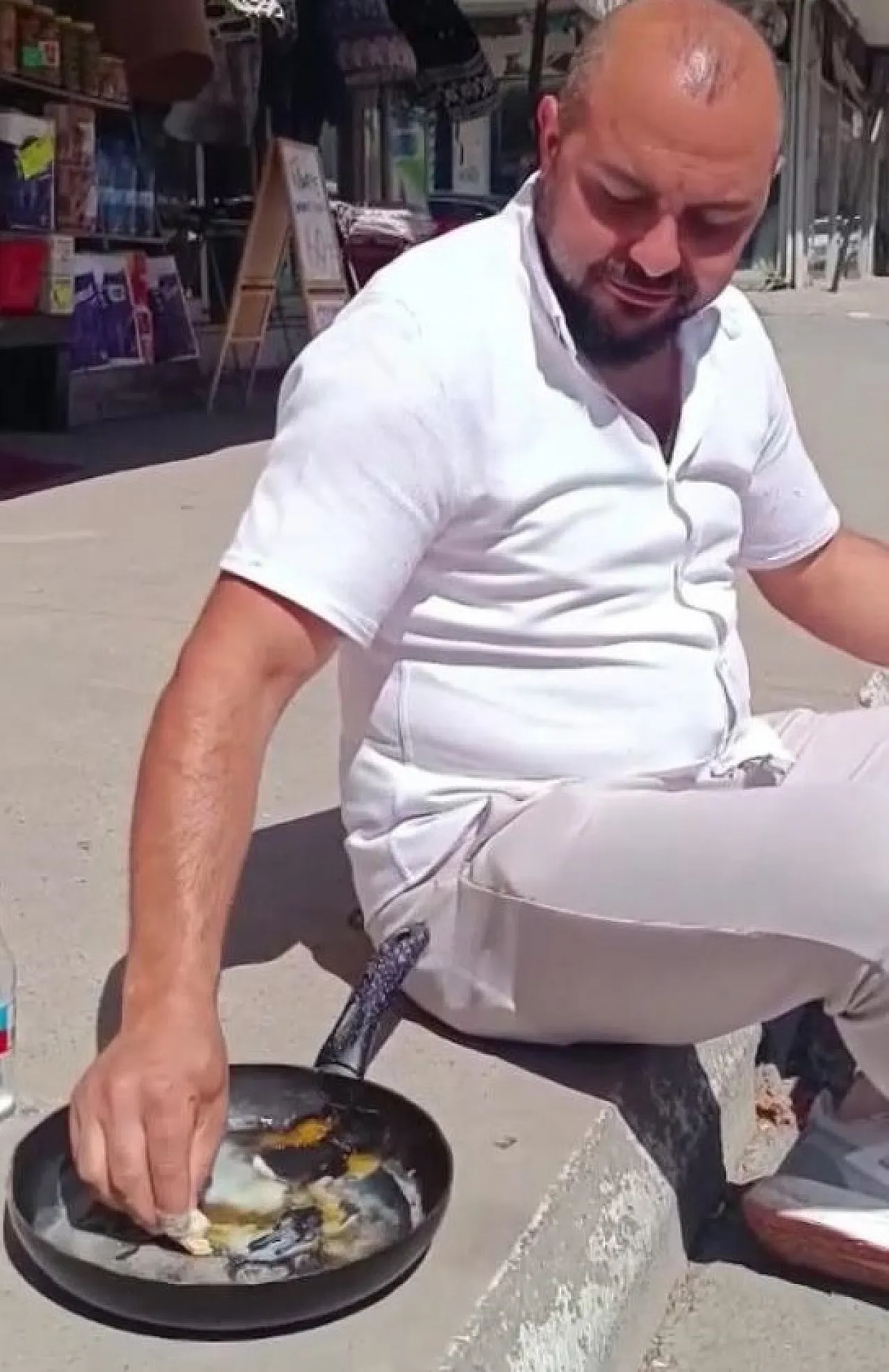 Pendik'te bir esnaf, 40 dereceyi bulan sıcak havayı fırsata çevirdi. Çevredekileri hayrete düşüren görüntülerde kaldırımın ortasına bıraktığı tavada yumurta pişiren vatandaş, sonrasında ise asfaltın kenarına oturarak pişirdiği yumurtayı afiyetle yedi.