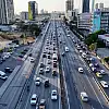 Havadan çekilen dron görüntülerinde, karayolu üzerindeki yoğunluk net bir şekilde görüldü.