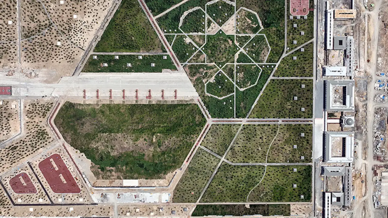 Atatürk Havalimanı'nda kullanılmayan uçak pistlerinin Millet Bahçesi'ne dönüştürülmesiyle yeşile bürünmeye başlayan alanda Selçuklu yıldızı motifi havadan çekilen görüntülerle ortaya çıktı.