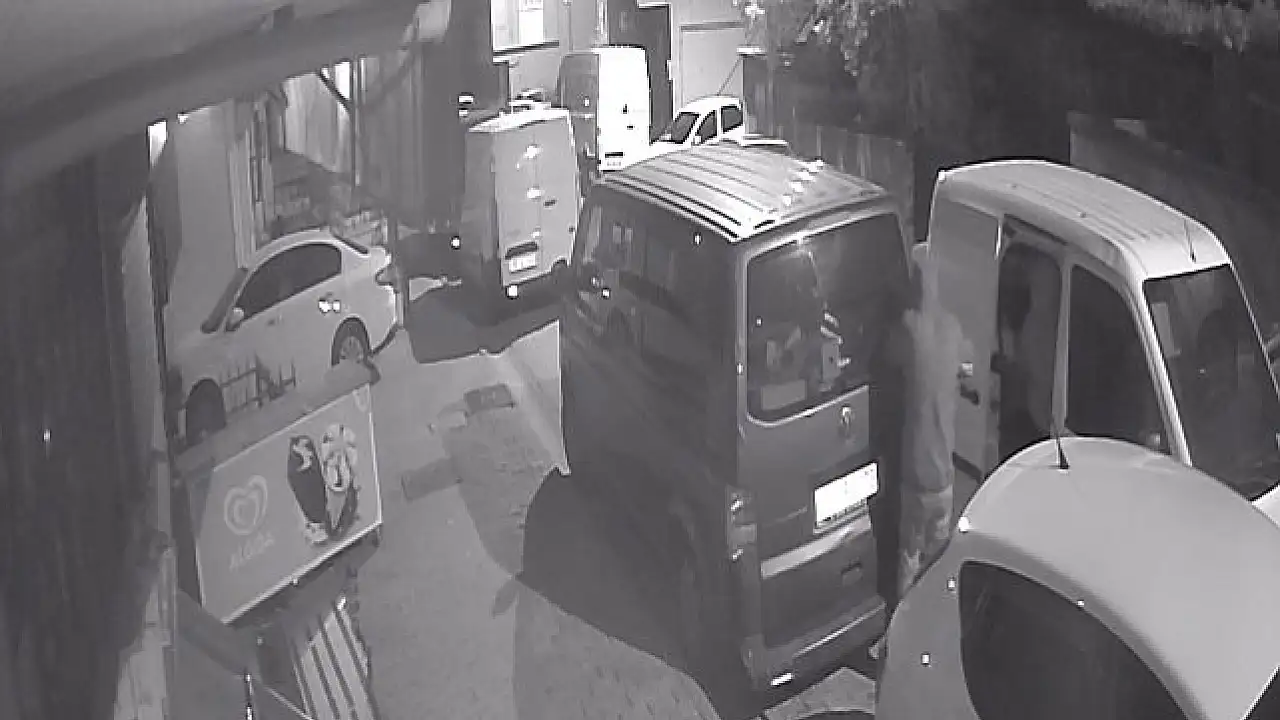 Kağıthane'de araçla gelen maskeli 3 şahıs, park halindeki minibüsün arka camını kırarak içindeki malzemeleri çaldı.