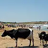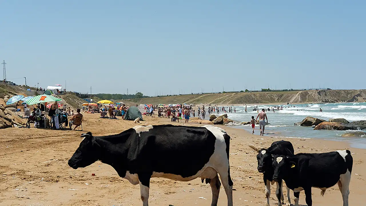 İnekler vatandaşların ilgi odağı olurken, bazı vatandaşlar ise şaşkınlığını gizleyemedi. Plajdaki renkli görüntüler, ilginç manzaralara sahne oldu