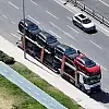 Togg yüklü tırlar İstanbul'a giriş yaptı. Togg dolusu tırlardan birirnin İstanbul yolculuğu havadan görüntülendi