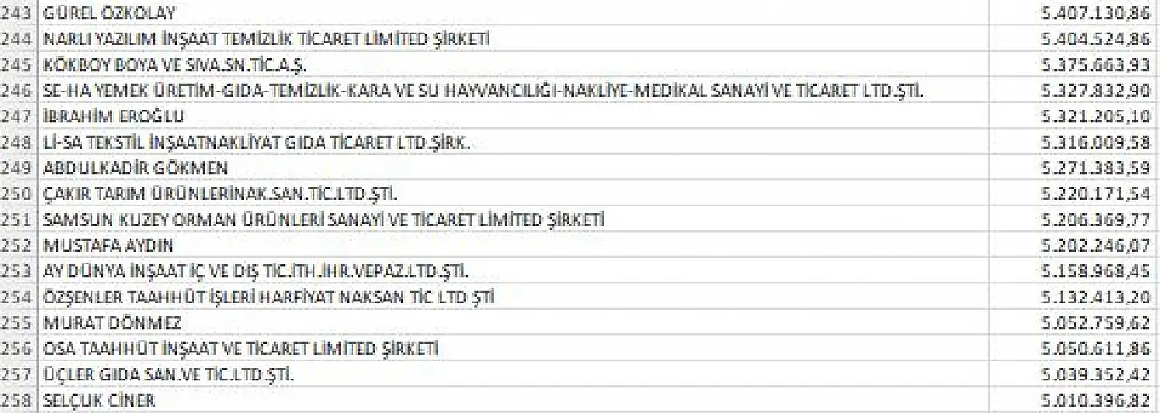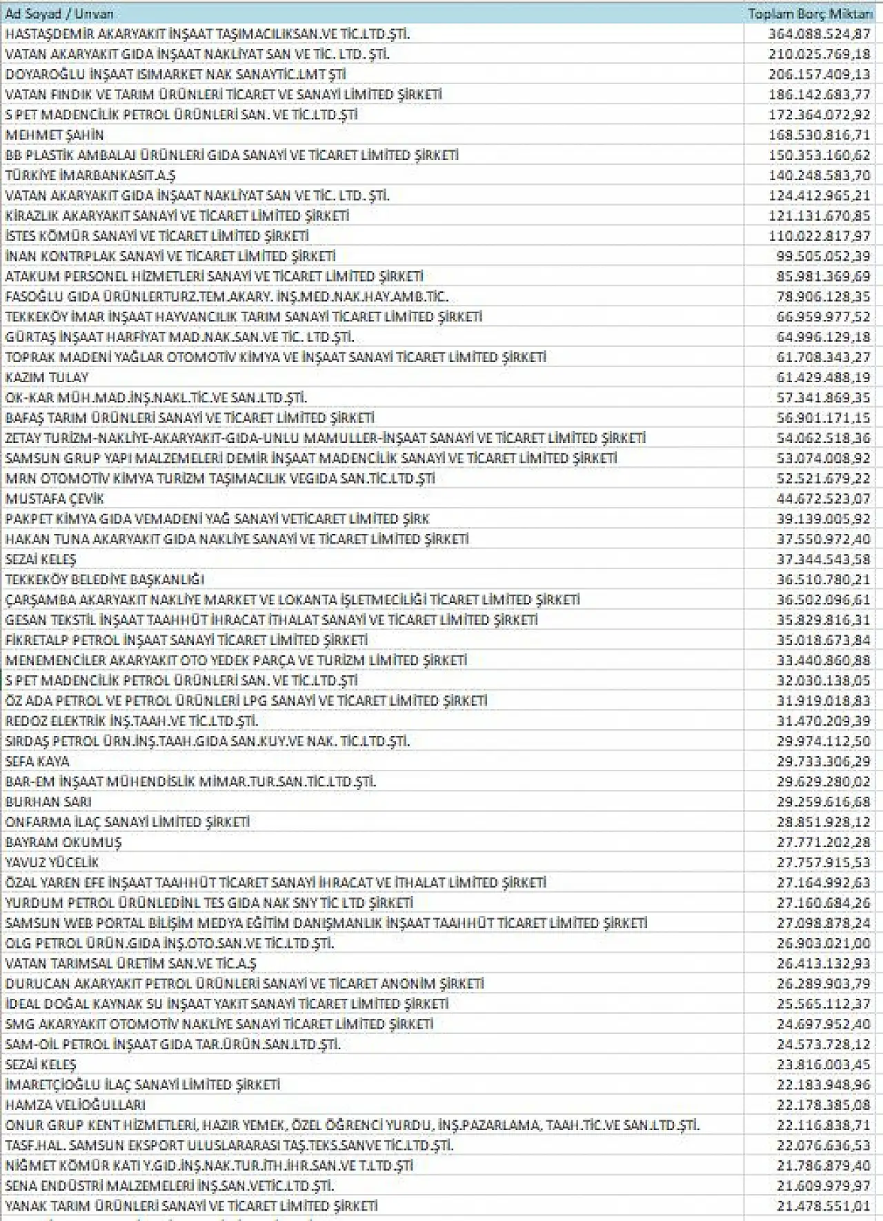 Hazine ve Maliye Bakanlığı'nın her yıl düzenli olarak açıkladığı vergi borçluları listesinde bu yıl Samsun, tarihinin en ağır borç yüklerinden biriyle karşı karşıya kaldı.