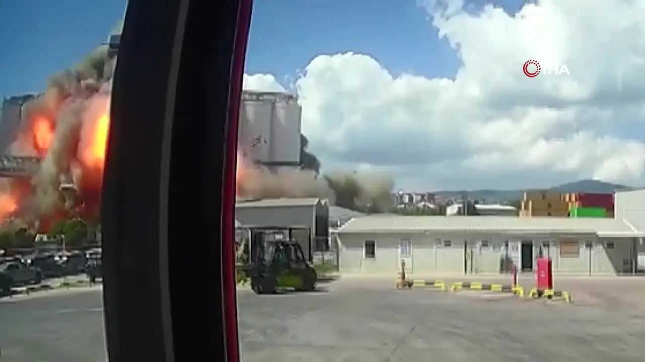 Kocaeli'nin Derince ilçesinde TMO silosundaki patlama anı, güvenlik kamerasına yansıdı.