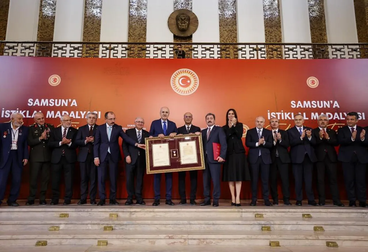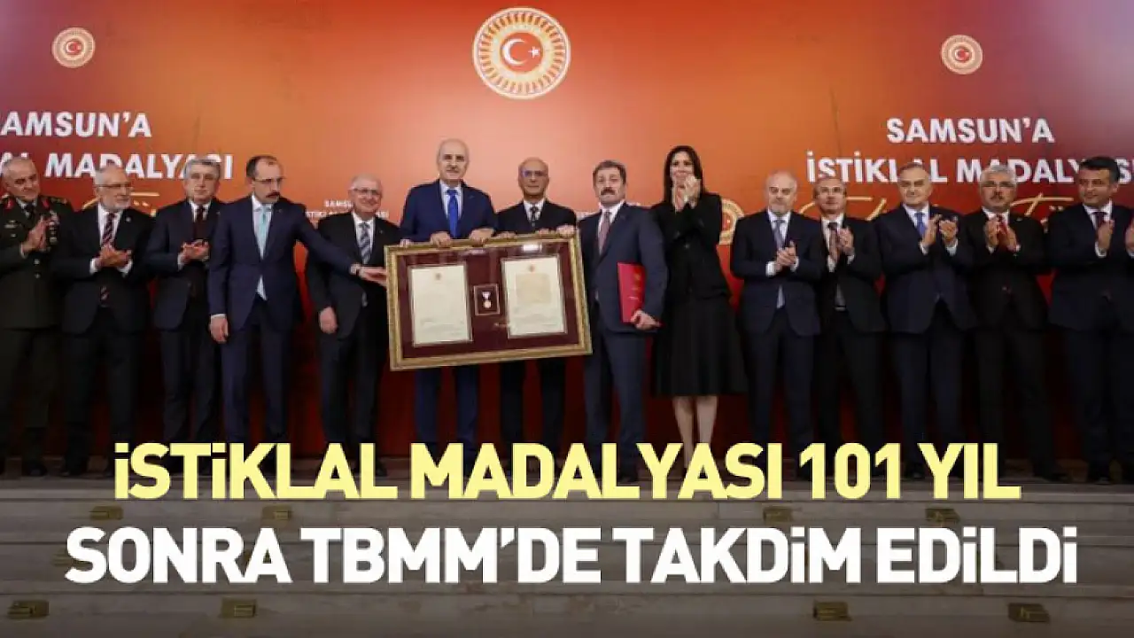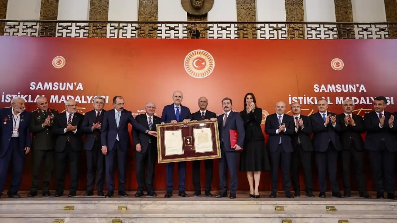 Türkiye Büyük Millet Meclisi'nde düzenlenen törenle 'İstiklal Madalyası Beratı' Samsun'a takdim edildi.