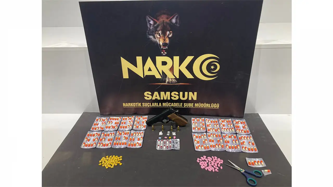 Olay, Samsun'un Canik ilçesi Yenimahalle'de meydana geldi. Edinilen bilgiye göre, Samsun Emniyet Müdürlüğü Narkotik Suçlarla Mücadele Şube Müdürlüğü ekipleri, çalışmakta olduğu işyerinden irtibatlı olduğu şahıslara uyuşturucu madde satışı yaptığı istihbar edinilen H.K.'yi takibe aldı. Söz konusu işyerine düzenlenen operasyonda gözaltına alınan K.H. ile birlikte 104 adet ecstasy hap, 240 kapsül sentetik ecza, 3 paket halinde toplam 0,52 gram metamfetamin maddesi, 1 adet 9 mm çapında ruhsatsız tabanca, 4 adet 9 mm çapında tabanca fişeği ile 1 adet uyuşturucu madde satışında kullanıldığı değerlendirilen makas ele geçirildi. Olayla ilgili soruşturma başlatıldı.