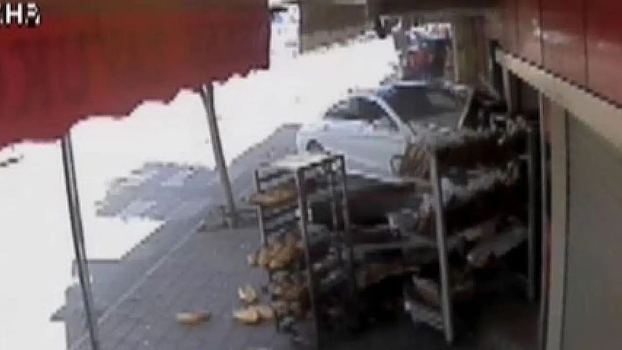 İki kişinin kılpayı kurtulduğu kaza anı ve sonrasında işyeri sahipleri ile zabıta ekipleri arasında yaşanan arbede güvenlik kameralarında saniye saniye kaydedildi.