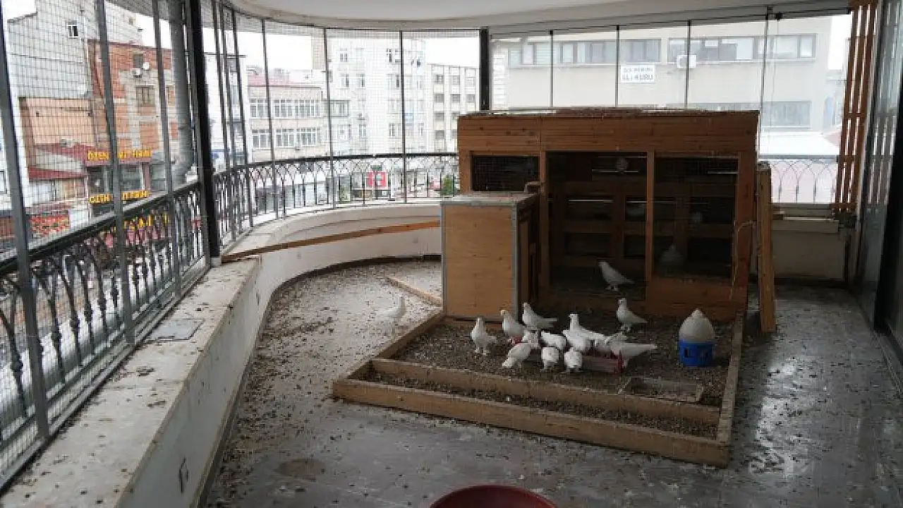 Samsun'da kuyumculuk yapan 73 yaşındaki Abdi Azgar, kuş sevgisi nedeniyle 3 katlı iş yerinin terasına güvercinler için özel bir kümes kurdu
