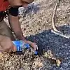 İtfaiyeci, alevler içinde mahsur kalan kaplumbağaya can suyu verdi