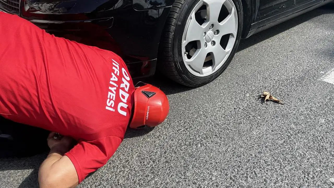Ordu'nun Ünye ilçesinde, bir otomobilin motor kısmına giren yavru kedi, itfaiye ekiplerinin çalışması sonucunda kurtarıldı.
