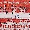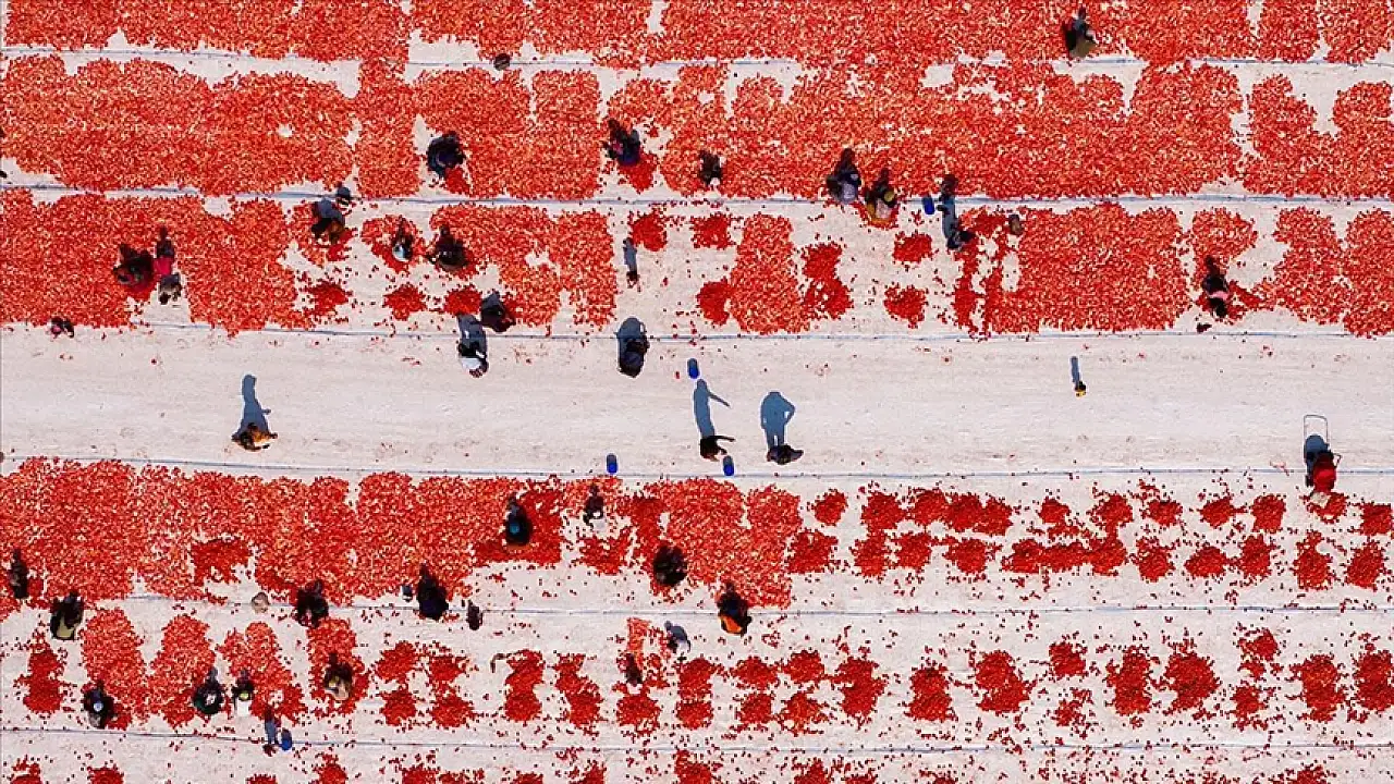 Türkiye'nin kurutulmuş domates üretim merkezlerinden İzmir'in Torbalı ilçesinde başlayan kuru domates mesaisi sergi alanlarını kırmızıya bürüdü. Bölgede nisan ayında ekimi, temmuzda ise hasadı yapılan domatesler, kamyon veya traktörlerle Torbalı Ovası'ndaki tarlalara getiriliyor.