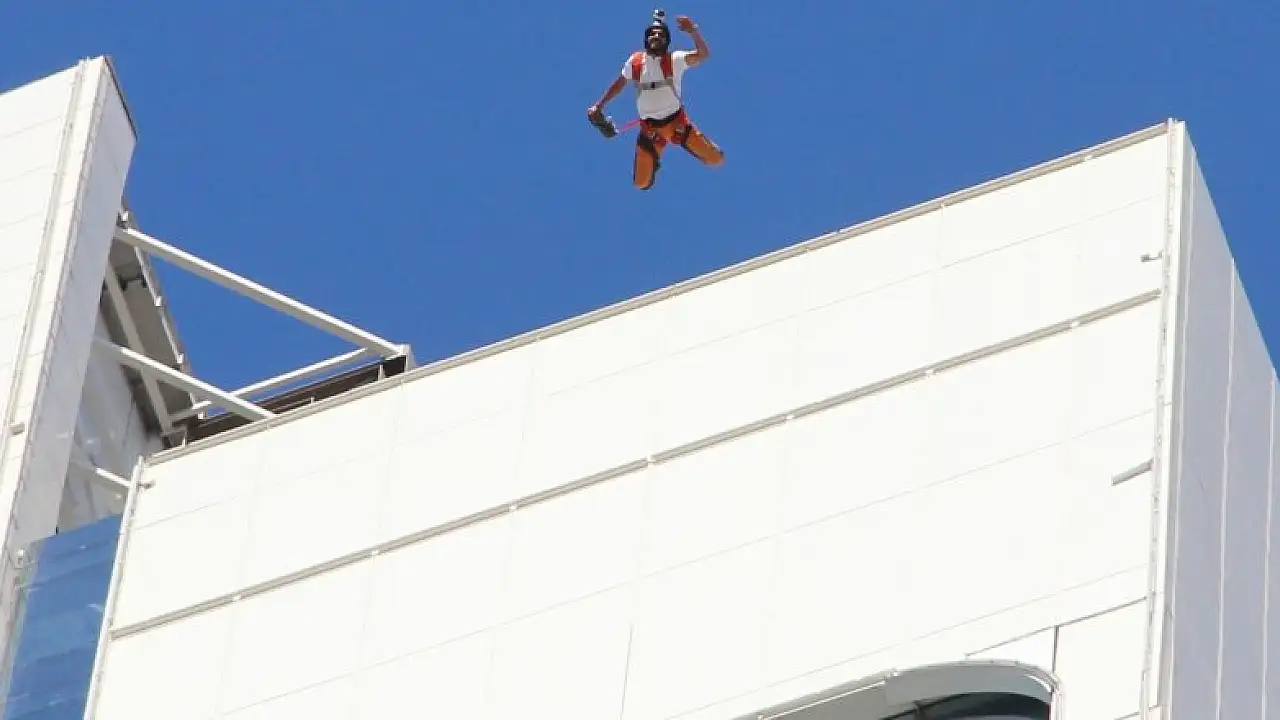 İzmir'in göbeğindeki kuleden paraşütle atladı