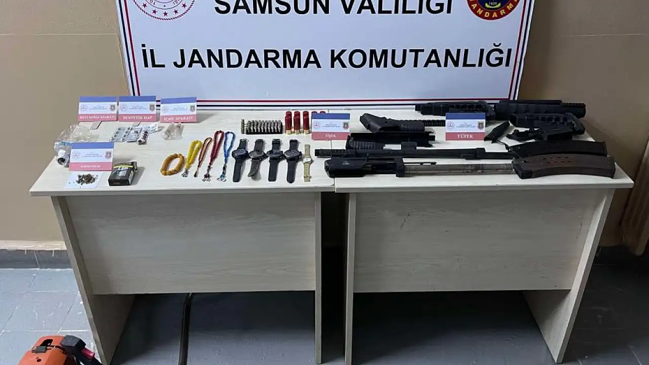 Edinilen bilgiye göre, Samsun'un 19 Mayıs ilçesinde son 17 gün içinde M.K., R.Y. ve S.P.'nin evinden, H.S. ve A.K.'ye ait işyerinden kimliği belirsiz şahıslar tarafından hırsızlık yapıldı. Jandarma Suç Araştırma Timi (JASAT) ve 19 Mayıs İlçe Jandarma Komutanlığı ekipleri tarafından yapılan takip ve araştırmada hırsızlık olayıyla ilgili S.A. ve M.A.O. yakalanarak gözaltına alındı. Gözaltına alınan şüphelilerin evinde çaldıkları jeneratör, ot biçme makinesi, tüfek, saat, tespih ile bir miktar uyuşturucu madde ele geçirildi. Çalıntı malzemeler jandarma tarafından sahiplerine teslim edildi. Olayla ilgili soruşturma devam ediyor.